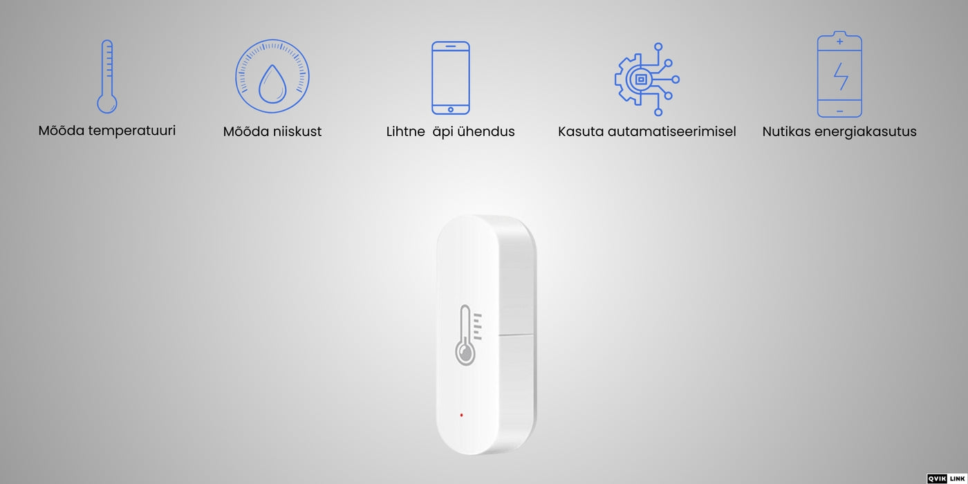 Kasuta nutikat temperatuuri ja niiskuse andurit, et automatiseerida oma kütte-, jahutus- ja õhuniisutusseadmeid. Lihtne seadistus läbi äpi võimaldab hõlpsasti luua kodus ideaalse keskkonna.
